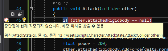 내가 만든 클래스(AttackState)에 중단점을 걸어보았더니,