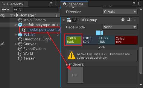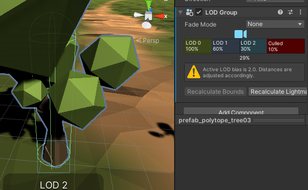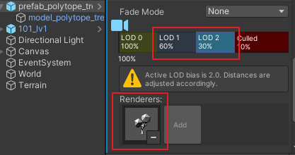 내가 tree로 사용하려는 나무 prefab 에는 LOD 컴포넌트가 없었다.