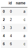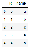 df = pd.DataFrame(data, columns=['id', 'name'])