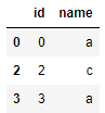 df3 = df.loc[(df['name'] == 'a') | (df['name'] == 'c')]