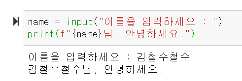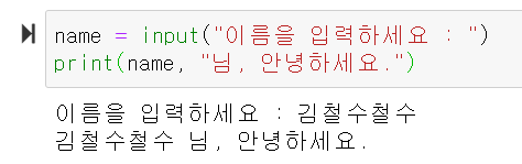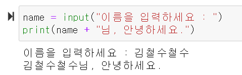 print(newStr) 과 print(name + "님, 안녕하세요.") 는 동일한 결과를 낸다.