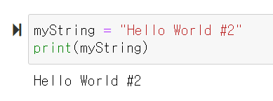 myString 이라는 변수를 만들고, 이 변수에 "Hello World #2" 라는 문자열을 담아