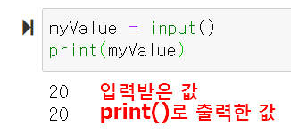 숫자를 입력받았지만, 사실 문자열 타입(str)의 "20" 이 myValue에 저장되어 있다.