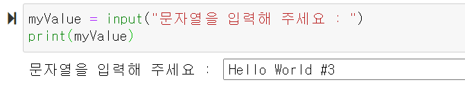 input() 함수를 사용하면, 유저로부터 문자열을 입력받기 위한 입력창이 뜬다.