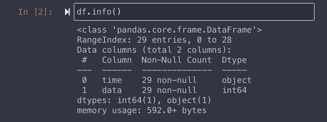 현재 df 데이터 프레임의 각 컬럼 별 타입은 다음과 같다.