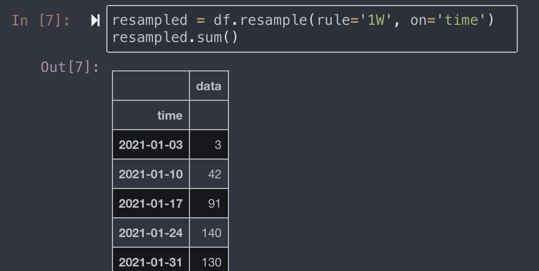 이렇게 일간 데이터를 주간 데이터로 바꿀 수 있다.