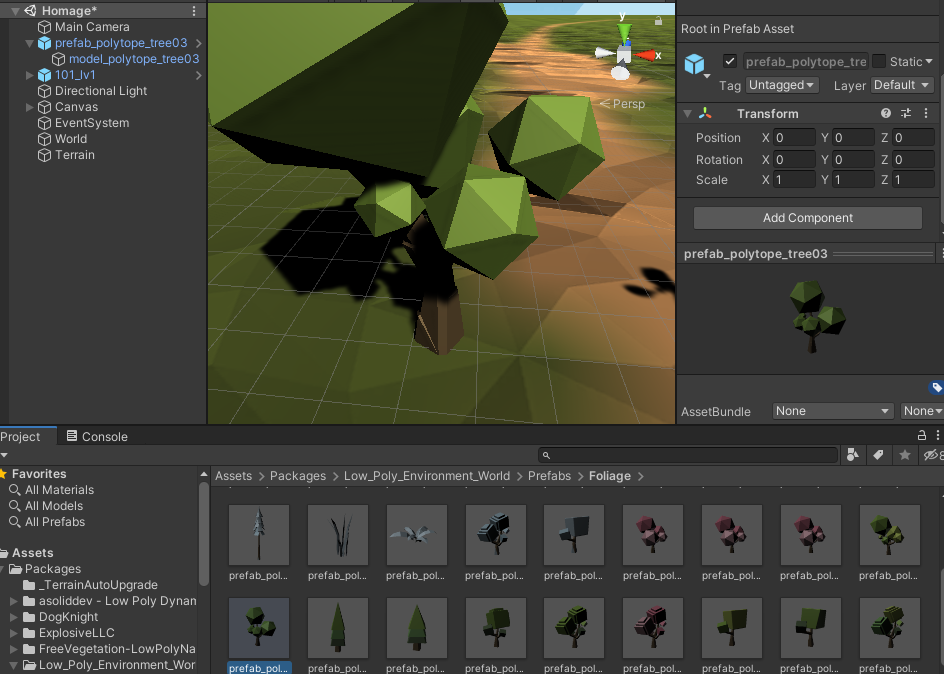 Unity : Terrain에서 Prefabs Tree가 추가되지 않을 때 (충돌박스 있는 나무 심기)